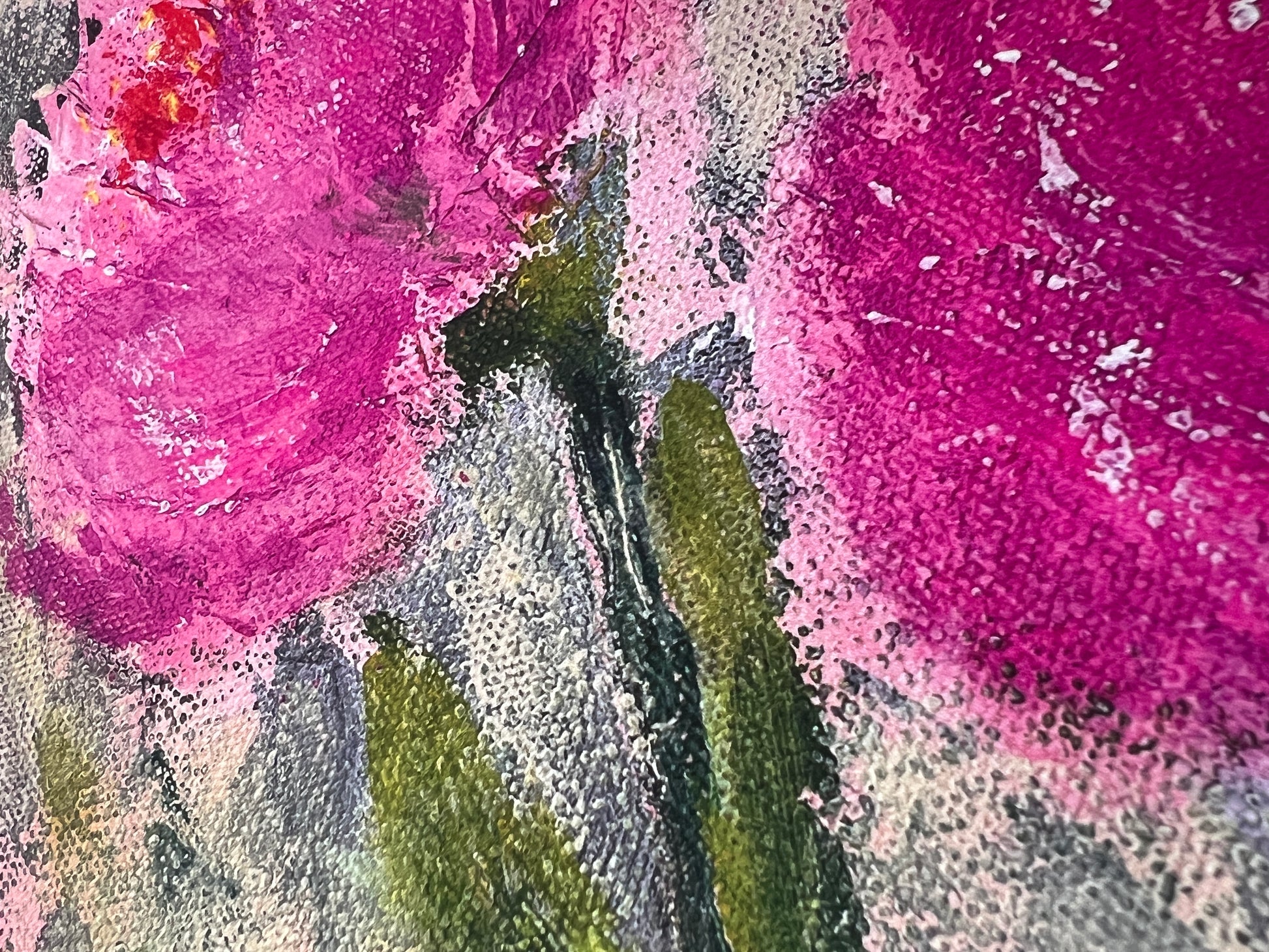 Created with layers of soft pinks and greens, this piece captures the timeless elegance and quiet joy of peonies in full bloom. Though their season is fleeting, the warmth and happiness they evoke endure—much like the moments and people that make life sweet.