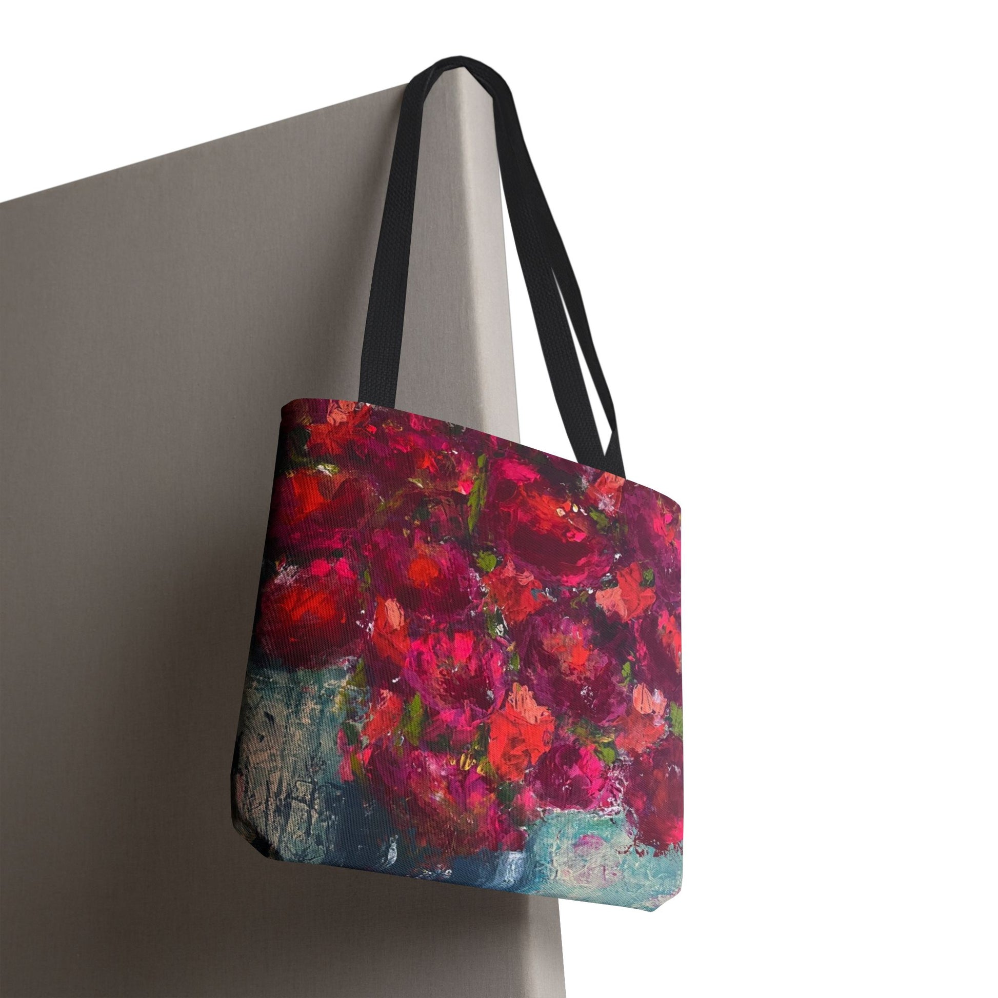 Carry around the beauty of deep pink roses with this durable and stylish tote bag. Perfect for everyday use, this tote bag adds a touch of elegance to your outfit. Ideal for those who appreciate floral artwork and want to make a statement.